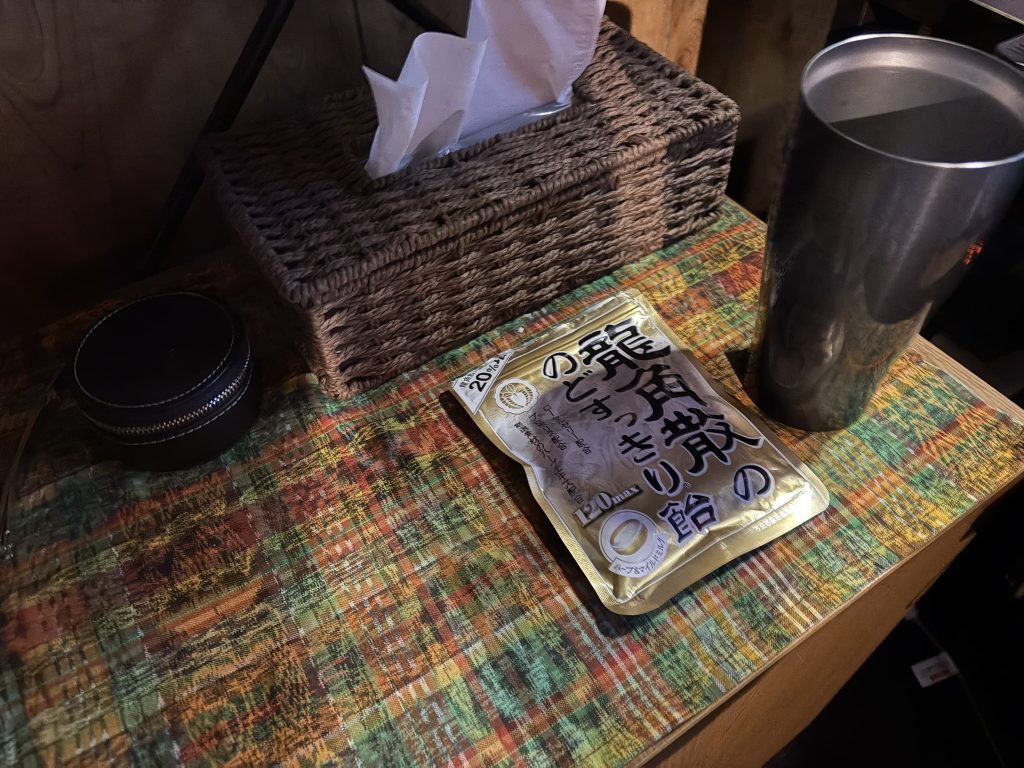 戸河内(ウイスキー)のちっちゃいボトルをペン立てにしてしまっています。案外ちょうどよかった。