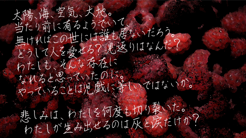 「愛と後悔を想うこと、それもまた愛と後悔を生むのか」と具体化された状態で世に放てた